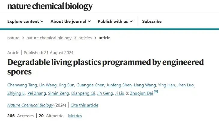 [1]Tang et al. Degradable living plastics programmed by engineered spores. Nature Chemical Biology. 2024, 206, 20.