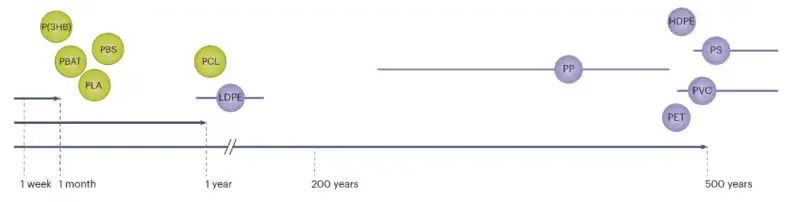 根据统计,聚丙烯等传统石油基塑料(PP)、聚乙烯塑料(HDPE)、聚乙烯(PS)、聚氯乙烯(PVC)聚对苯二甲酸乙二醇酯酯(PET),降解时间超过100年。