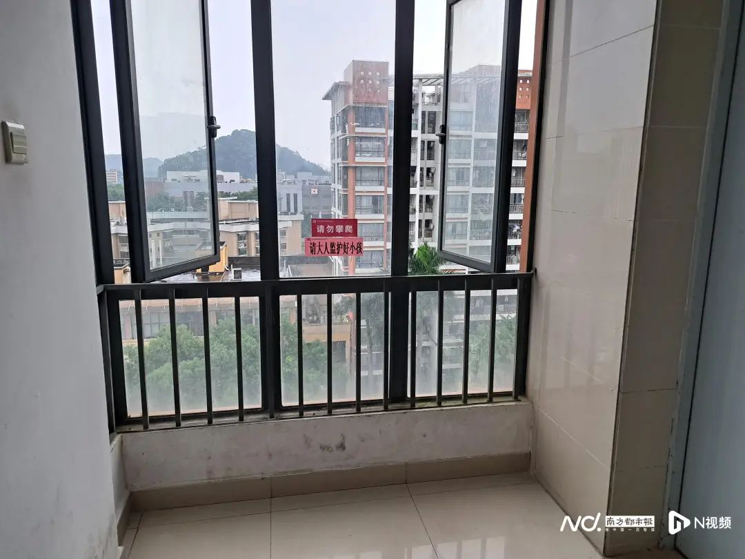 南都记者前往事发楼测量护栏高度,发现底部水泥墙高度约35cm,安装在水泥墙上的铁护栏高度约60cm,从底部到窗户高度约95cm。其中,窗户是推拉式的,完全推开后可以容纳一个位置。窗户中间贴着“请不要攀爬”和“请成年人监视孩子”的通知。