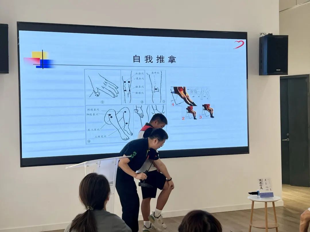 在健康生活工作坊阶段,龚利博士通过亲自示范直观地展示了膝盖疼痛的自我按摩位置和按摩技术,纠正了参与者错误的锻炼方法。理论与实践的结合,使参与者正确理解了膝盖疼痛的科学辅助治疗方法,为推广健康生活方式奠定了坚实的基础。