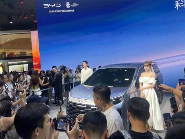 其中最引人注目的是比亚迪汽车全新 MPV 商品夏季全球首发,其展位也被密不透风包围。