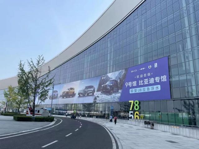 比亚迪汽车的展览可谓“自信”。不仅展位面积大,而且每款车型都有展示,户外技术展示区也有详细的拆解展示。具体的自研黑技术,租用整个车展唯一的全广告。可以说“包馆”很合适。