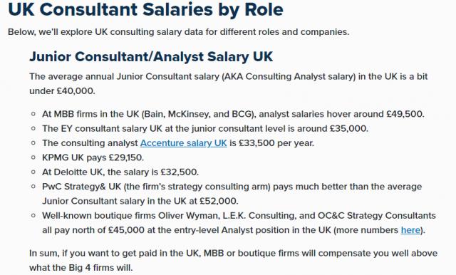 在英国,MBB 或者精品咨询公司通常会提供比四大咨询更高的薪水。