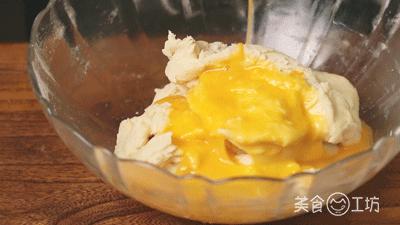 2. 将鸡蛋打成蛋液,倒入面粉中继续揉成较薄的面团,然后加入食用油将面团揉平。
