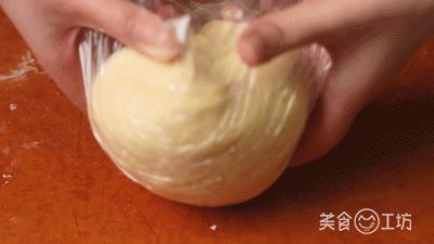 3. 取出面团,用保鲜膜包裹,常温发醇。 1-2 把面团发酵到一小时 2 倍大。(如果室温低,发醇度不够,可以延长时间,也可以放在冷藏室隔夜发醇)