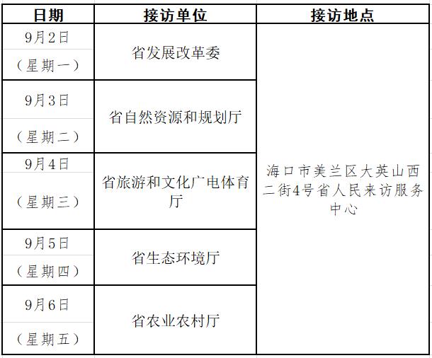 8月30日,海南省信访局发布9月2日至6日省直属单位领导访问日程。详情(来源:海南日报客户端)
