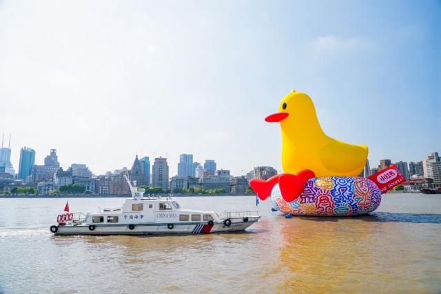 巨大的艺术装置“鸭马路”在黄浦江漫游,其背后是他们的全力保障