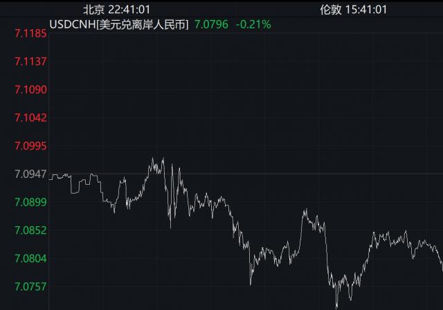 截止北京时间 8 月 30 日晚 22 时 30 分数,人民币汇率继续飙升,离岸人民币对美元上涨。 7.08 关口,现报 在岸人民币7.0796报美元 7.0863。