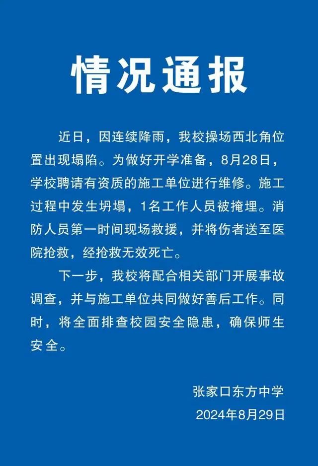 张家口一中操场施工塌陷导致一人死亡!学校通知→