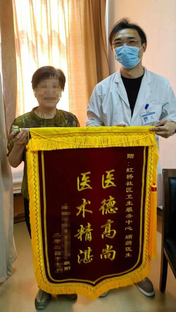 不久前,住在虹桥镇的浦阿姨也送来了横幅和表扬信。浦阿姨因为各种原因反复感染胸部皮肤破裂,错过了手术日期。据朋友介绍,浦阿姨在虹桥社区卫生中心找到了外科医生顾蔚。顾蔚为浦阿姨制定了个性化的手术治疗方案。手术后,经过社区护理门诊的精心护理,浦阿姨的身体状况逐渐好转,生活质量明显提高。