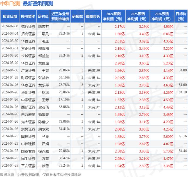 根据近三年发布的研究报告数据,证券之星数据中心的招商局证券研究人员团队对该股进行了深入研究,近三年的预测准确度均为 预测79.34% 2024 年度归属净利润为利润 1.6 十亿,根据现价转换预测。 PE 为 108.6。