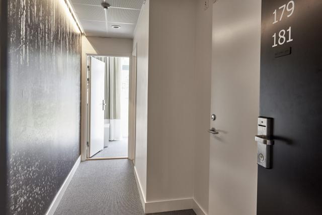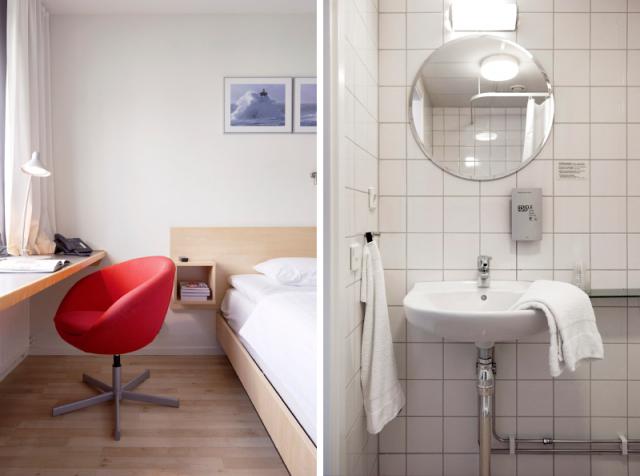 酒店有 4 种类户型,面积最大的是 18 前者提供了一个平方米双人房和家庭房。 1.6 x 2 米双人床,并与之搭配 ALEX 阿来斯系列办公桌和 PERSBOL 佩斯博尔扶手椅,后者提供两套上下铺装,睡觉时可以拉上帘子…