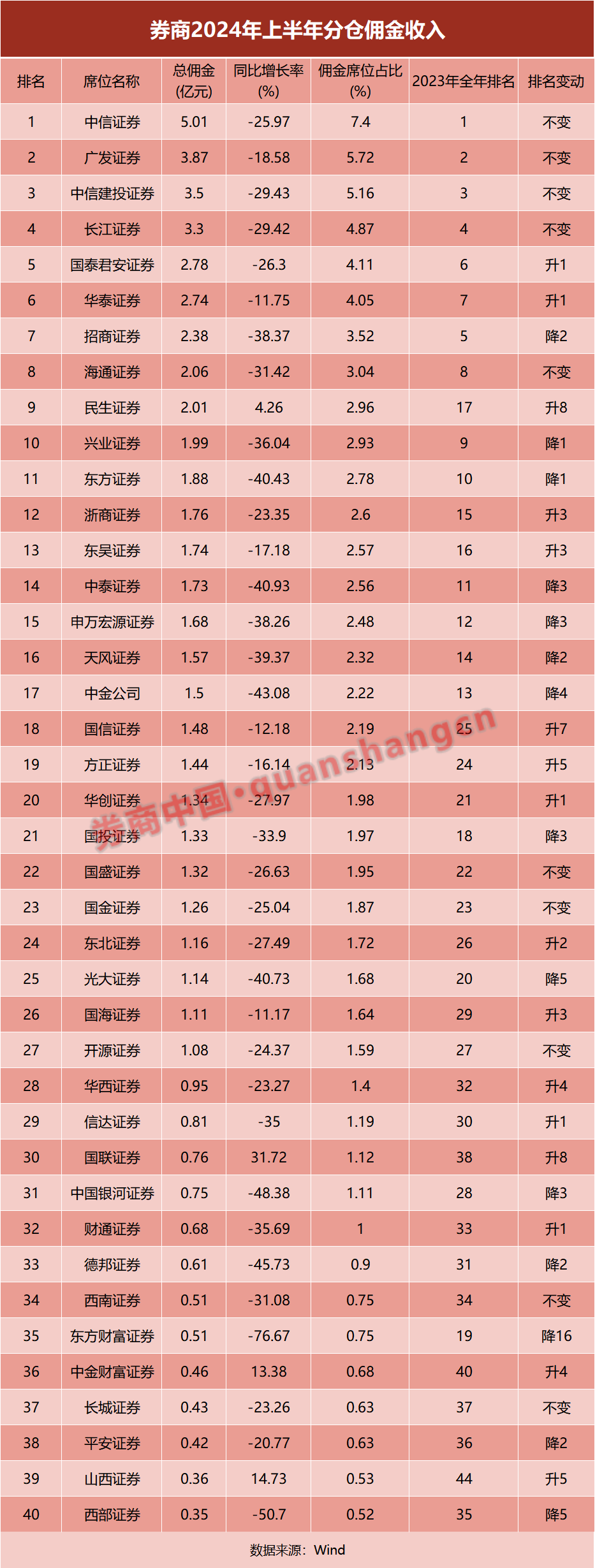 2024年上半年,券商分仓佣金收益成绩单公布,公募基金中报披露季结束。