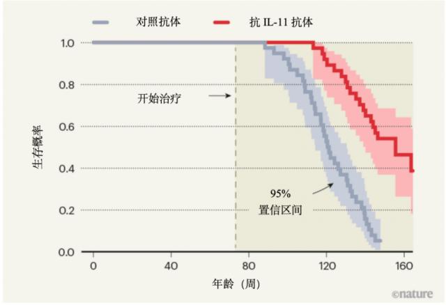 老鼠在衰老过程中,IL-11 水平明显上升,这与几种老化疾病密切相关,包括营养代谢、肌肉流失和肝脏问题。