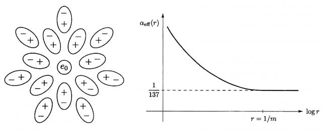 真空极化示意图及示意图 α 趋势图随尺度变化 [ 7 ]