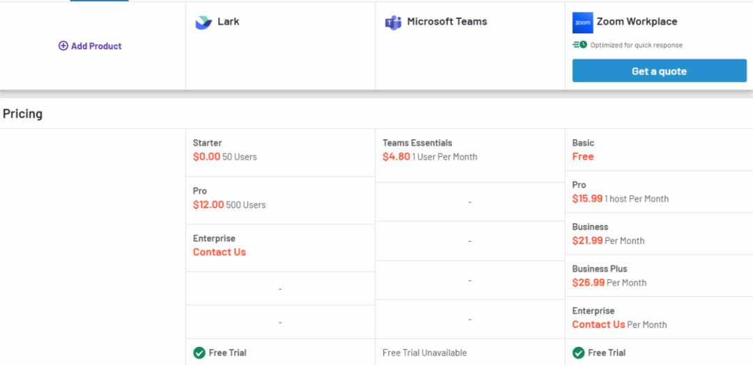 Zommm,Lark、Microsoft Teams等协同办公软件竞争,一般版本类似于Zomm采用免费机制,标准版本的价格低于Zoom。并且通过集成API、为了增加收入,第三方应用。