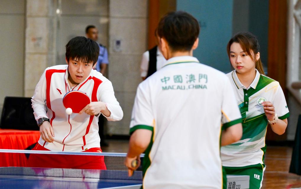 除了讨论和问答,中国艺术体操队的“金花”还在现场展示了自己的技能,并与学生进行了艺术体操教学互动。男单冠军樊振东、女单冠军陈梦、巴黎奥运会乒乓球混双冠军王楚钦、孙颖莎、女单冠军陈梦也与澳门乒乓球运动员进行了混合比赛。