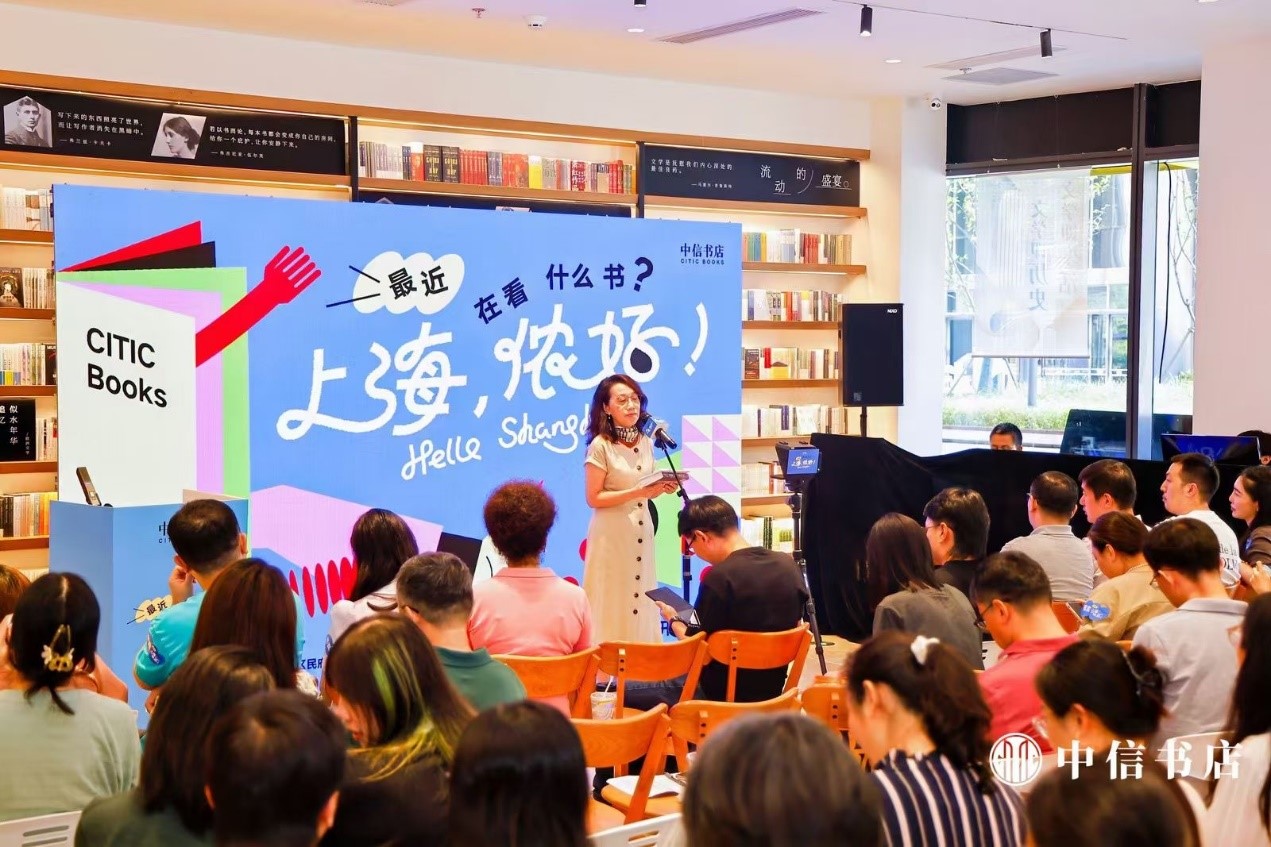 中信书店江湾店玻璃幕墙上贴着“上海,农村好”的会议语言,表达了“深度参与城市文化运营,与城市共同成长”的愿望。当天,书店举办了一场活动,也紧紧围绕着上海这个城市的前世。