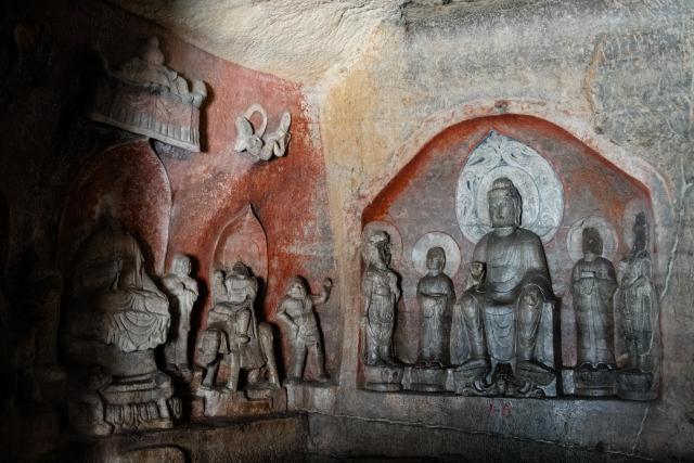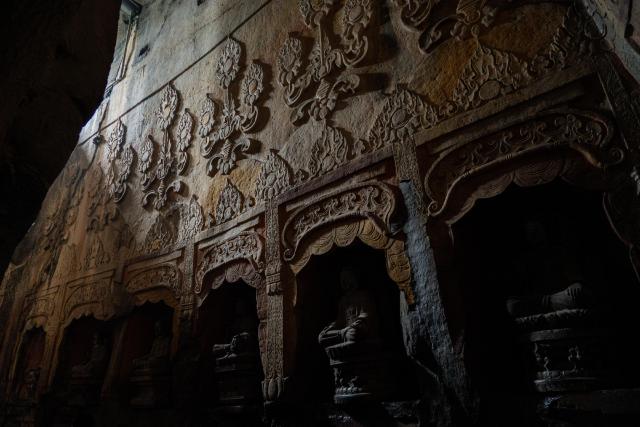 经过几个洞穴的后续参观,除了震撼,更多的是遗憾。洞穴中大多数单独的雕像已经被盗,洞穴中的许多浮雕也被切割和盗窃,几乎没有头部和手部留下的石像。这些破坏不仅有几千年的自然腐蚀,还有更多的人为破坏。如今,我们只能通过这些不完整的遗址来想象它们挖掘之初的壮观和华丽。