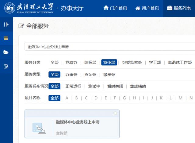 登陆“智慧工业大学”平台 , 进入“办事大厅” - "宣传部" - “在线申请融媒体中心业务”,填写并提交服务申请。