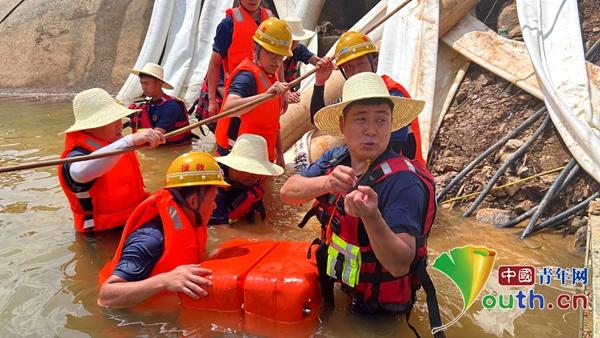 图为湖南平江县大型内涝灾害救援现场的国家矿山应急救援平顶山队。安全地图。