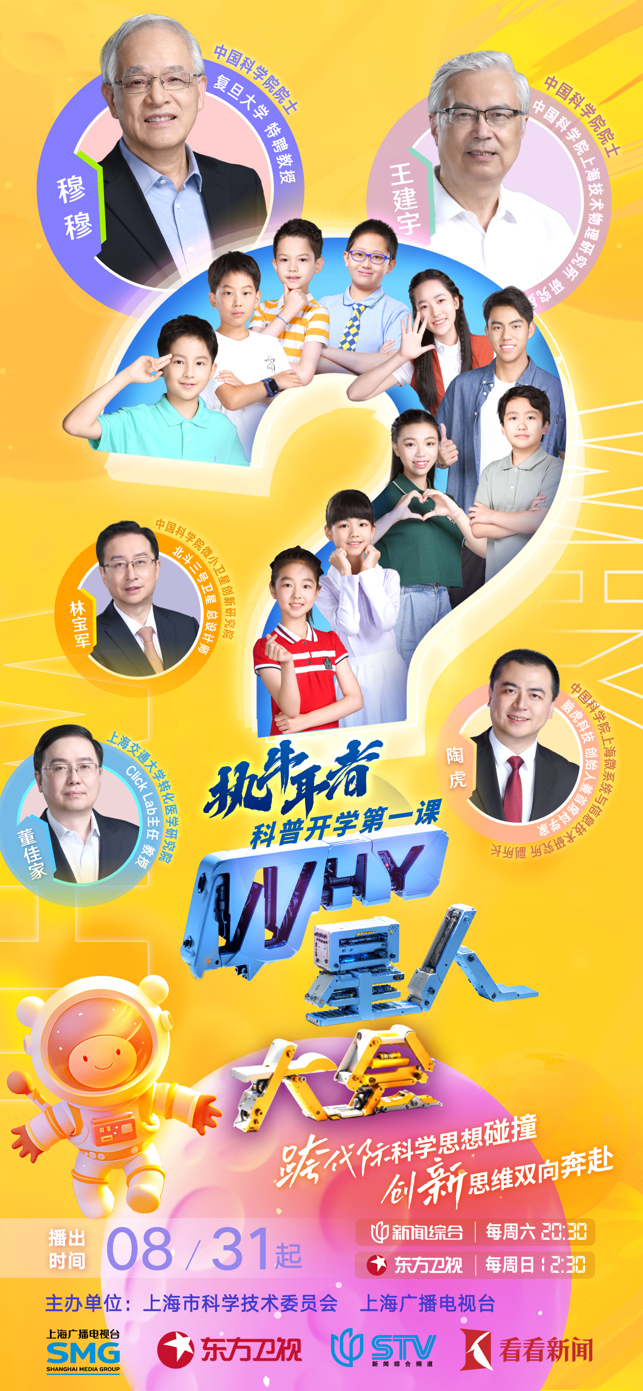 8月31日起,上海电视台新闻综合频道每周六20:30,东方卫视9月8日起每周日12:30。请锁定《执牛耳者》特别节目科普开学第一课《WHY星人大会》,开启一场精彩的科学问答。