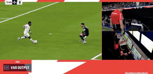 在半场补时阶段,罗德里戈获得了贝蒂斯的救场球,罗德里戈在突破过程中突然开始射门,足球打到了边网。