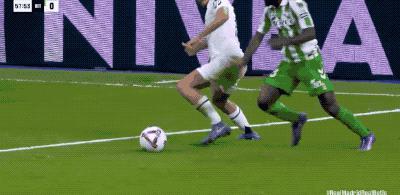 接下来的 5 分钟,算是姆巴佩的时间,首先是在维尼修斯的倒三角传中,姆巴佩的射门击中了防守球员,没有任何威胁。