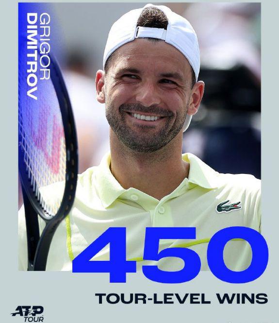 迪米特洛夫 3-2 险胜 6 种子卢布列夫:职业生涯: 450 胜里程碑