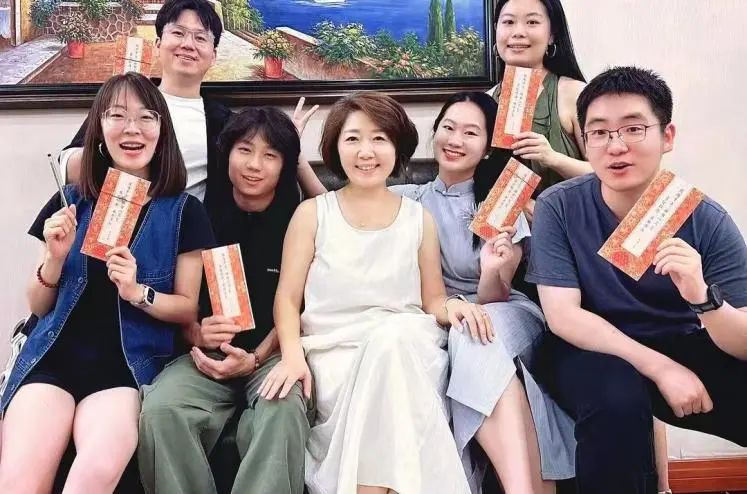 范小青与今年刚毕业的中国传媒大学学生合影留念,学生们称自己为“范门”学生。(图/由受访者提供)