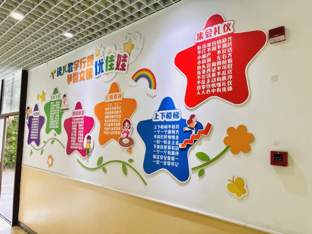 绿苑小学校园也悄然发生了新的变化。近年来,教学楼前的窗户设计展示学校“优秀” 充满活力的课程和丰富多彩的活动。在教学楼里,不同楼板主题的育人墙也是全新的。比如一楼为一年级新生设置了规则墙,为新生适应校园,健康成长导航。