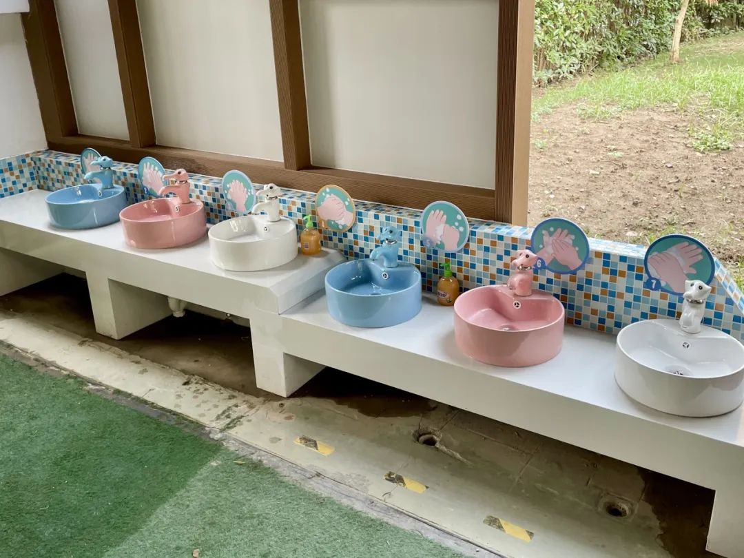 今年暑假,北新泾第三幼儿园也对部分校园设施进行了改造。一进花园,全新的校园文化墙就凸显了幼儿园“乐雅育人” “智慧”的课程理念。沙池、门厅进行了翻新,校园门内的儿童洗手台不但数量增多,而且变成了可爱的象鼻形状。在教学楼内,增加了一个专门的活动室——建筑室、科探室和图书室。这里,孩子们将有更多的沉浸式探索和学习空间。