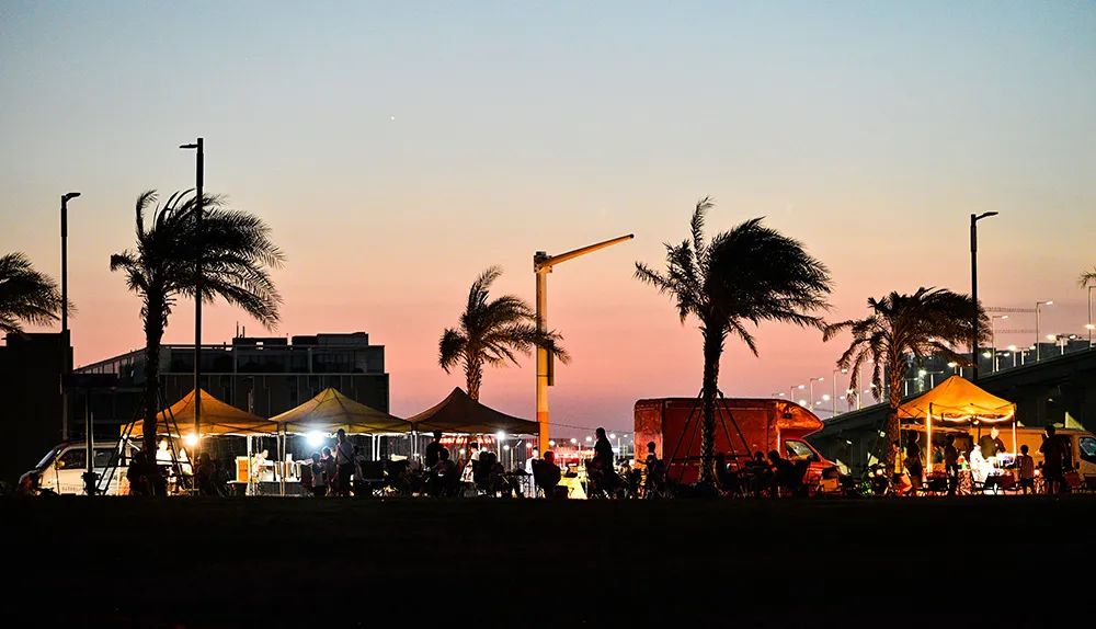 最后,让我们看看一个纯净的日落。背景是温暖的黄色夕阳,色调温暖浪漫。背光剪影下的小市场准备展开。不用担心光线环境弱。尼康Zf的iso可以随意向上推,完全可以轻松控制暗光。另外,我用120毫米的焦距拍摄,让画面有一种压缩感,让这张照片有一种在电影院看电影的视觉体验。