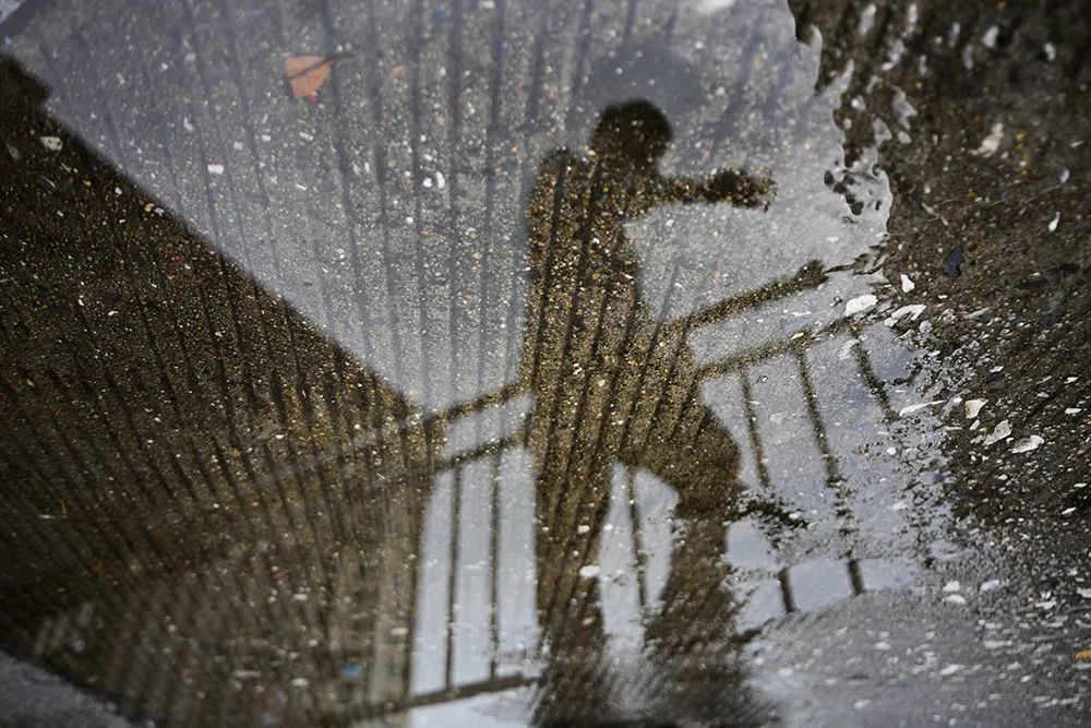 一场大雨过后,不妨关注一下路面的内容。水渍表面形成一面镜子,将路面上所有的风景都投射到水面上,蹲下来拍一张照片,可以形成抽象的画面。拍摄时要注意选择轮廓感强的主体,让观众更容易看到主体的内容和环境信息。