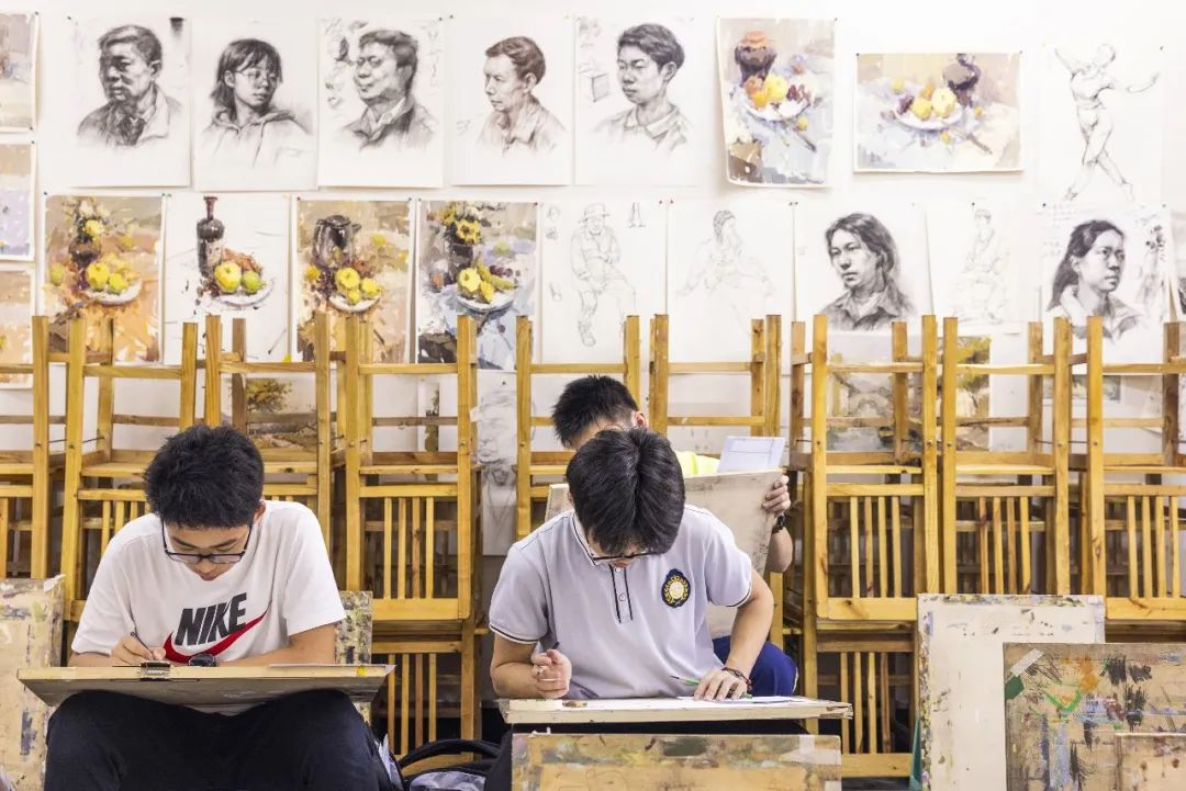 2022年7月12日,高一新生在美术教室摸底考试正在进行中。