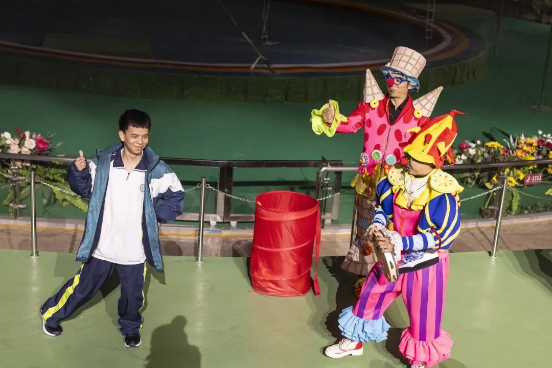 秋游于2023年11月16日前往杭州动物园,与马戏团演员一起上台表演。