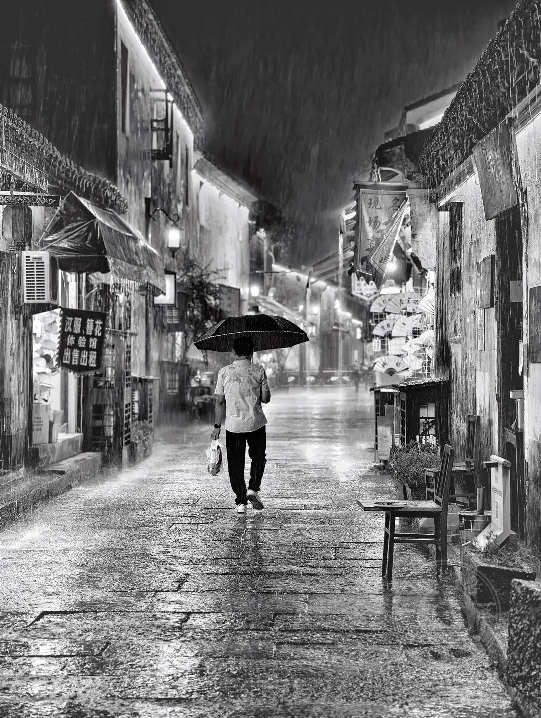 2023年9月12日,在湖州衣服街历史街区拍摄,雨天的倒影非常有趣。