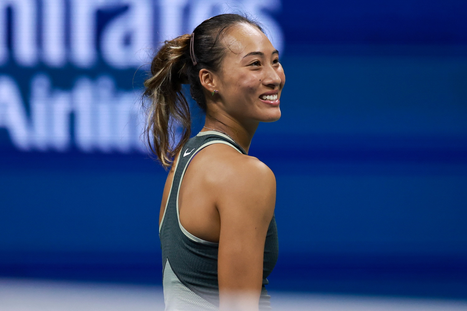 郑钦文面带微笑。@美国网球公开赛USOpen