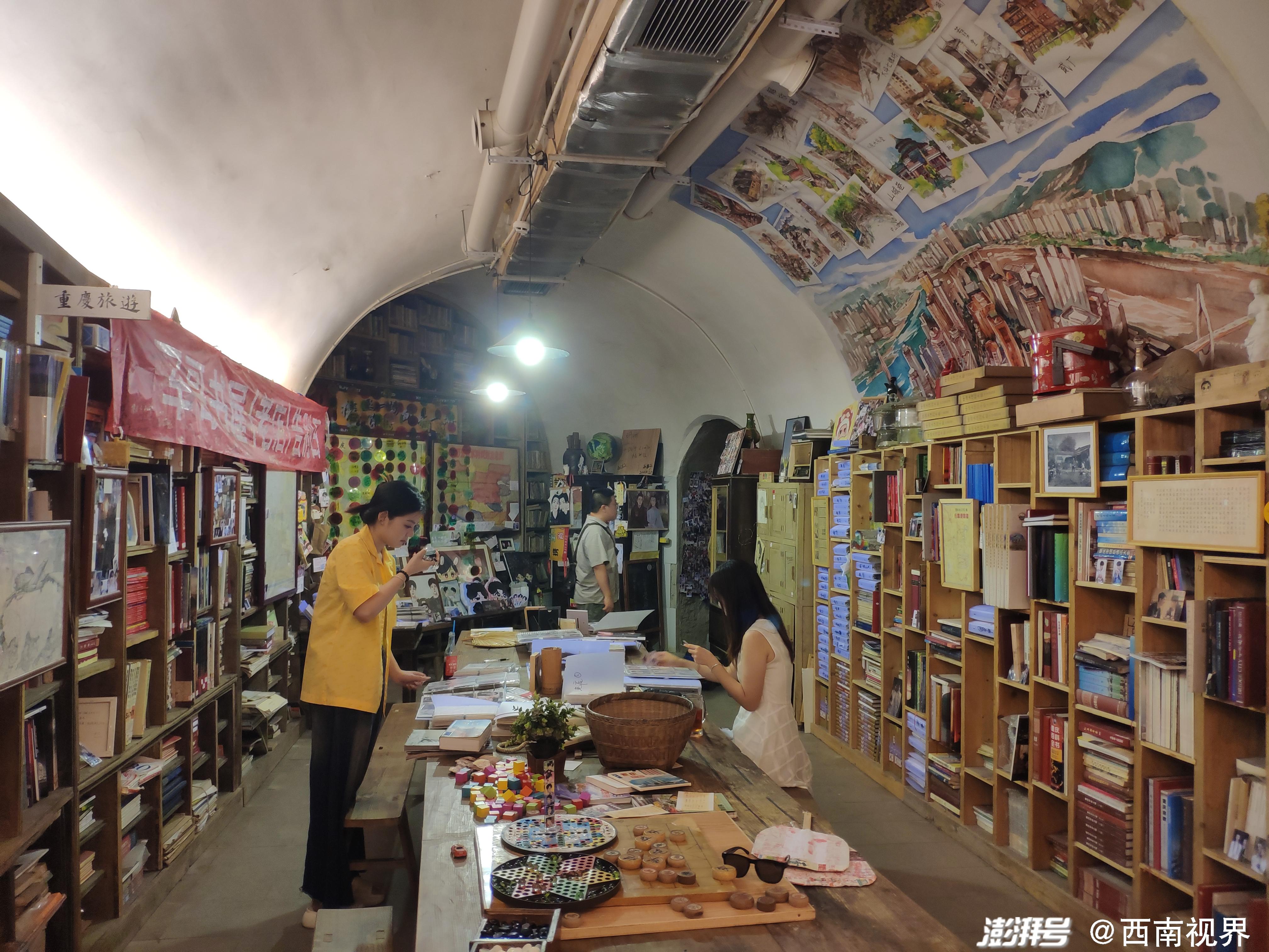 重庆高温天气持续,防空洞军哥书屋成为市民游客避暑的好地方。