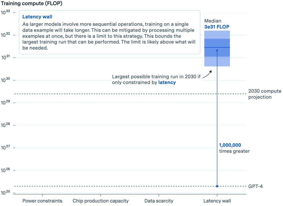 Epoch认为:“如果充分考虑,这些人工智能瓶颈意味着训练运行高达2e29FLOP至本十年末是合理的。”