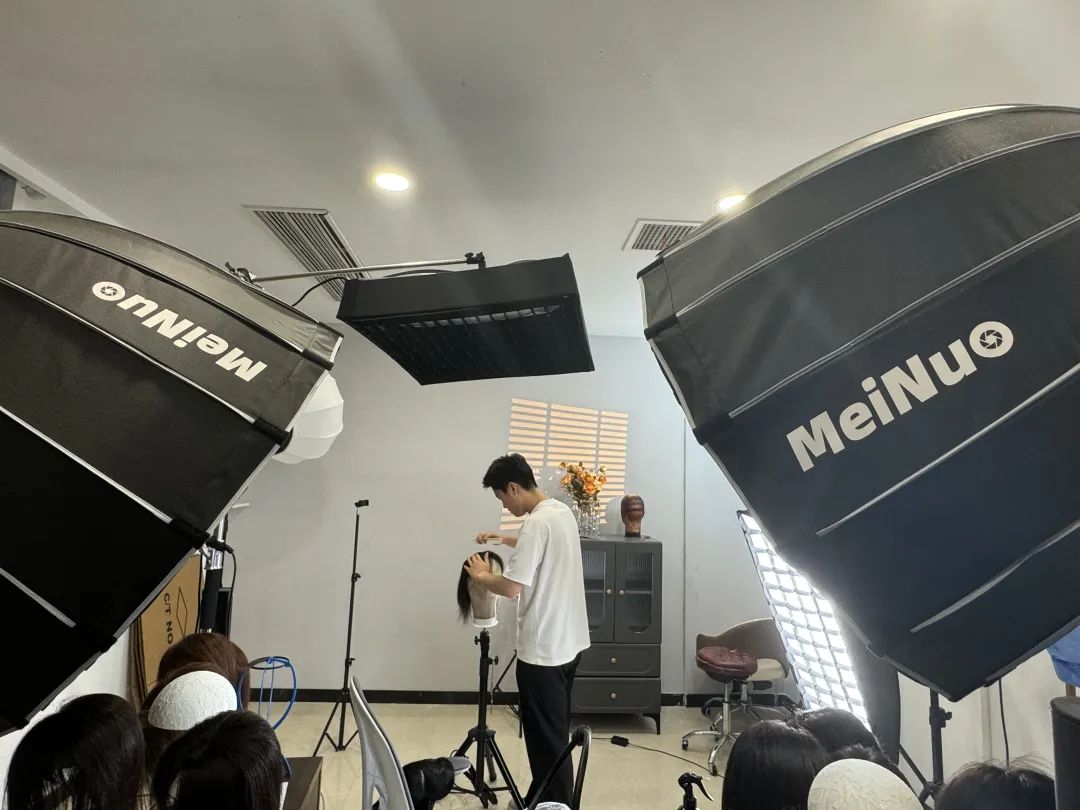 2023年,黄一丁发现,不少当地假发品牌涌入线上直播。他敏锐地意识到,这是一种给企业注入活力的趋势。“当时我看到抖音的流量很大,客户需求也很大。”于是,他迅速组建了一个直播团队,开始了直播销售。