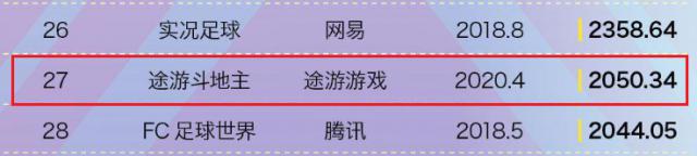 更加夸张的是,在这份收入清单上,途游有两款游戏入围。另外一个“途游斗地主” 》预期收益也达到了 2050.34 万美金。