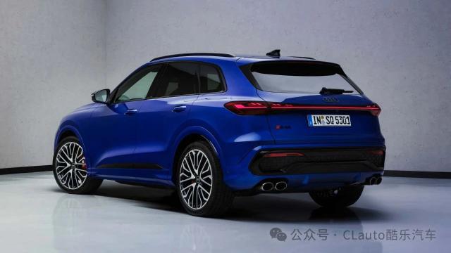 车尾方面,车顶有尾翼,高位刹车灯同时嵌入。尾灯组采用贯穿式设计,大灯采用熏黑处理,与之前泄漏的间谍照片几乎一致。黑色装饰板的下围部分层次更加丰富,排气布局为双边双出,而 SQ5 然后采用双边四出布局。