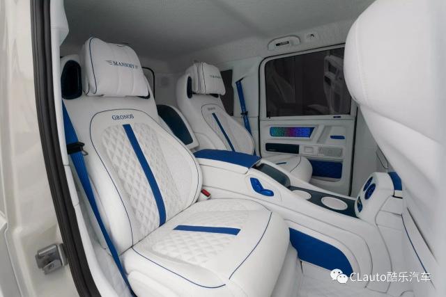 内部部分,和 Mansory 和其他改造项目一样,这款车的内饰经过重新设计,采用了优质的白色和蓝色皮革组合,同时还增加了一些碳纤维装饰细节,与外观保持一致。