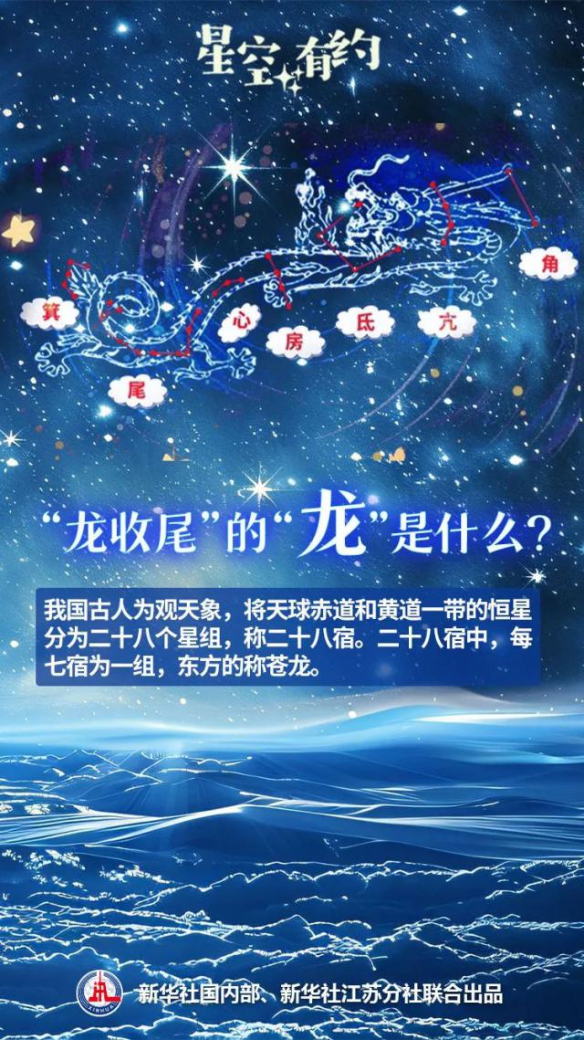 什麽叫“龙尾”?要弄清楚这个问题,首先要了解这条“龙”。中国科学院紫金山天文台科普主管王科超介绍,我们国家的古代人把天球赤道和黄道一带的行星分成二十八个星组,叫做二十八宿。28号宿舍,每七个宿舍是一组:东方是苍龙,南方是朱雀,西方是白虎,北方是玄武。“龙尾”中的“龙”是东方的龙。