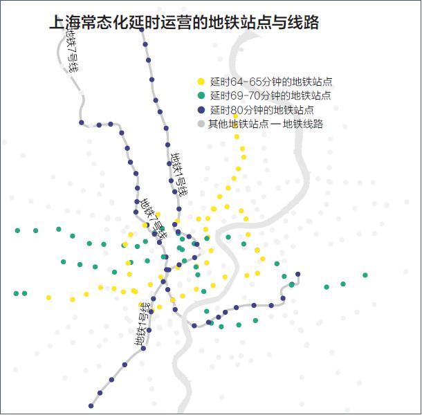 从分布来看,延时最多的地铁站基本覆盖了内环以内的区域,以及宝山和闵行郊区的延伸线。