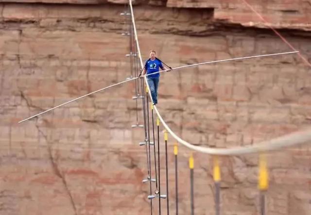 ▲尼克 · 高空穿越加利福尼亚州大峡谷的瓦伦达考验