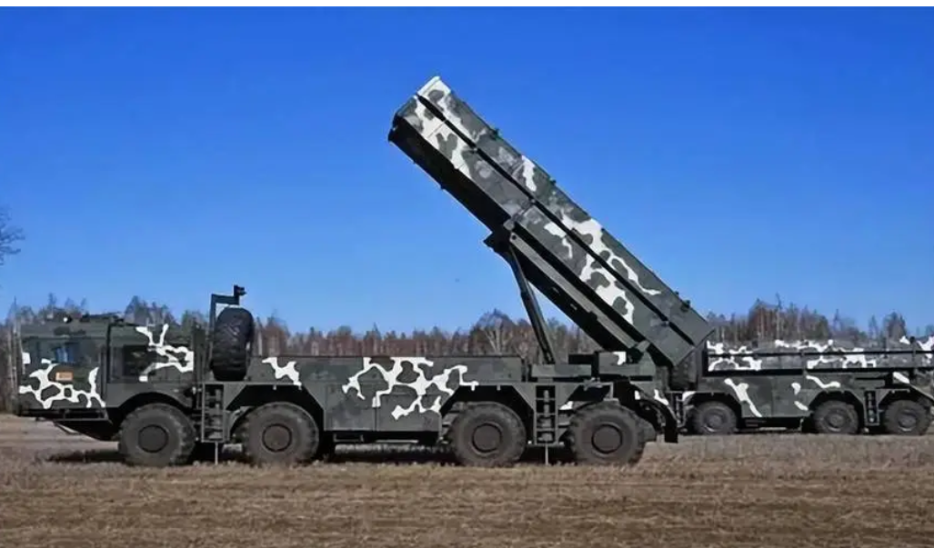 白色俄罗斯装备的“波罗乃兹”300毫米远程制导火箭炮,可以和乌军的“海马斯”火箭炮竞争。