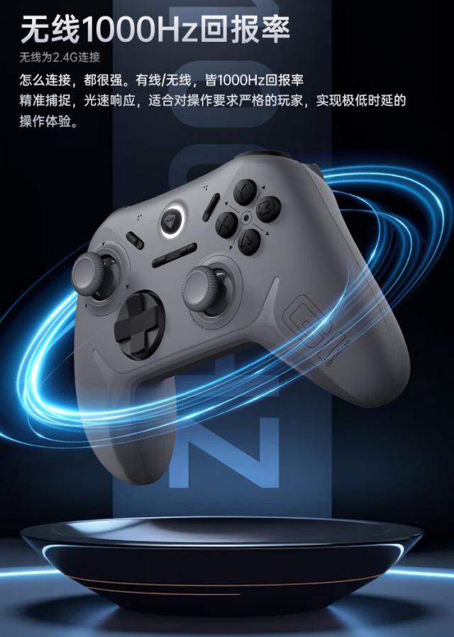 根据介绍,机械师 G1 支持有线的摇杆,2.4GHz、提供蓝牙三模连接无线(2.4G) 有线双 1000Hz 回报率;配置四霍尔系统(双霍尔遥杆 双霍尔枪栓遥杆支持系统) 512 级 FPS 固定步幅,枪栓触发机制<1mm。