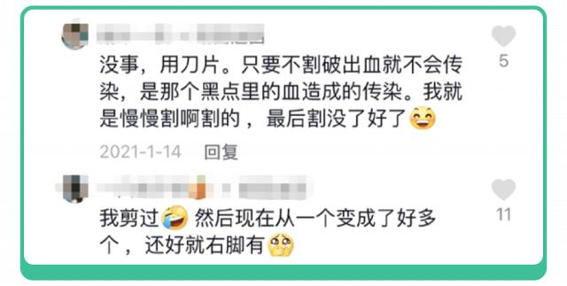 科大还注意到有许多治疗跖疣的偏方,比如,用刀片自行切割,又或者是用将饱和盐水浸泡后涂抹 0.1% 的维 A 酸乳膏等等。